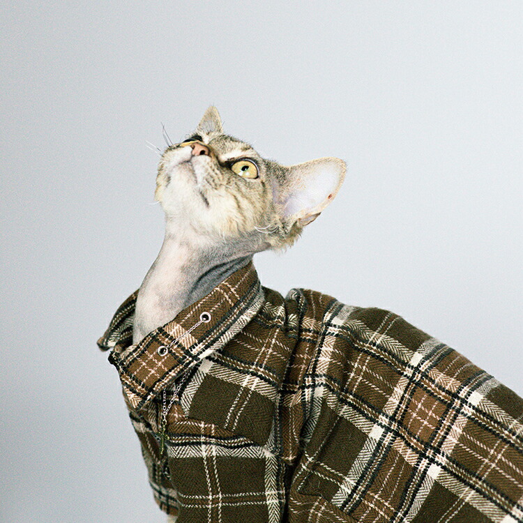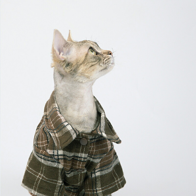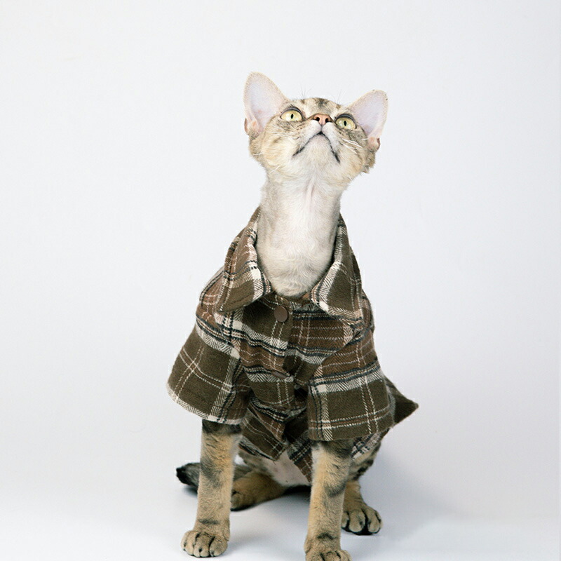 毛がない猫にオシャレな服 チェック柄 可愛い 夏 ペット オシャレペット ペットグッズ 猫用品 キャットウェア