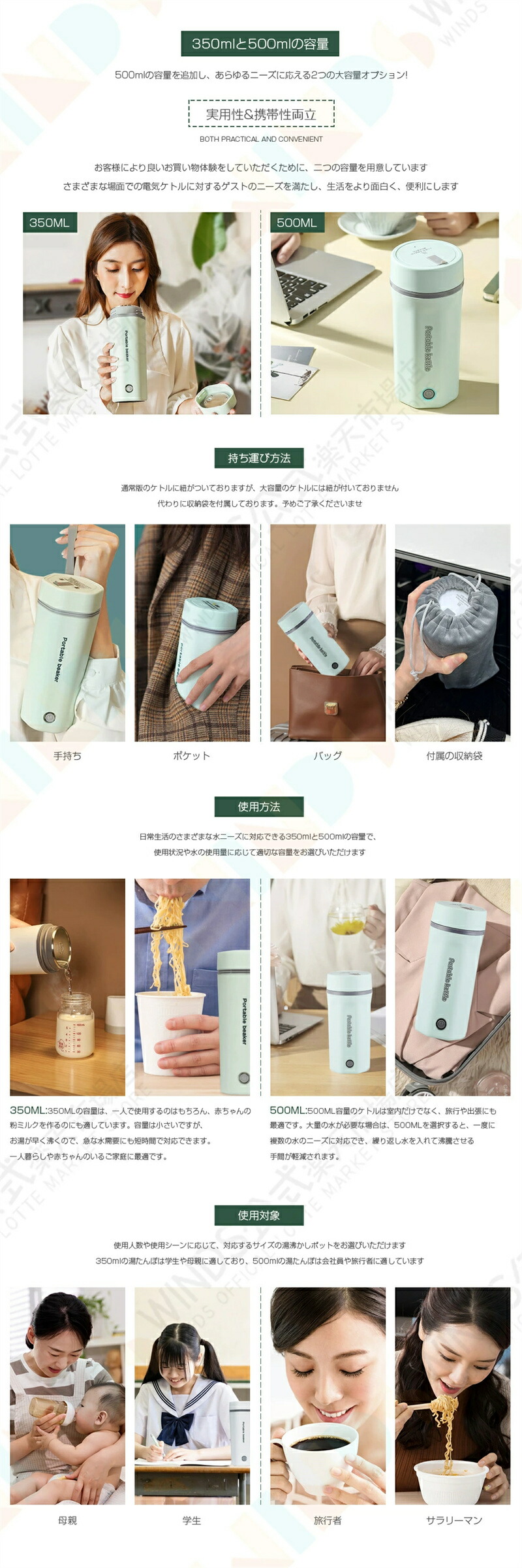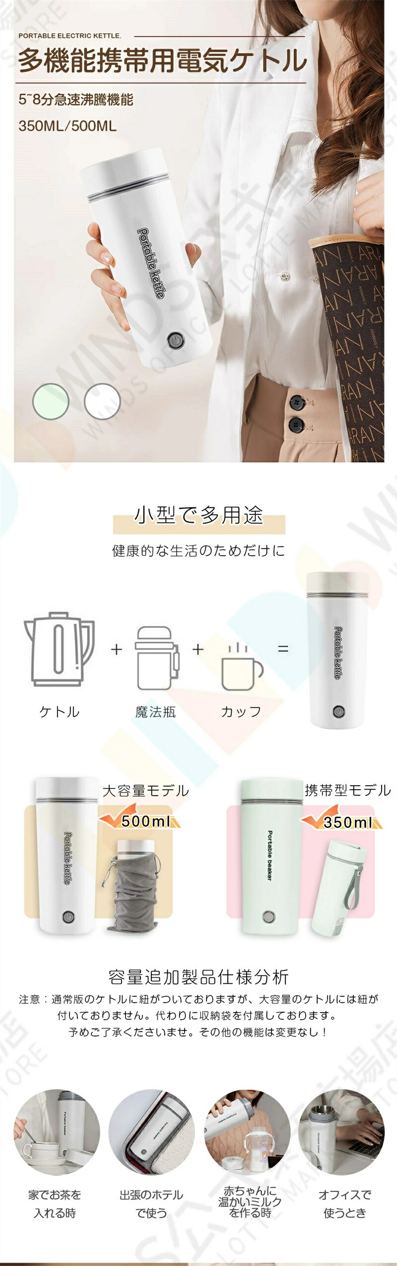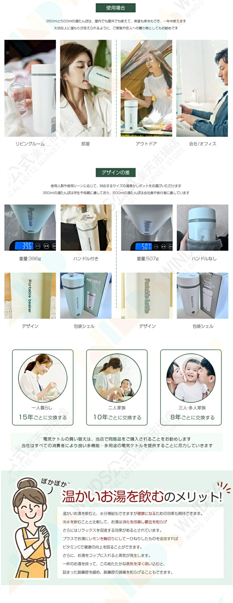 ★【350mlのメリット】350MLの容量は、一人で使用するのはもちろん、赤ちゃんの粉ミルクを作るのにも適しています。容量は小さいですが、お湯が早く沸くので、急な水需要にも短時間で対応できます。一人暮らしや赤ちゃんのいるこ家庭に最適です。