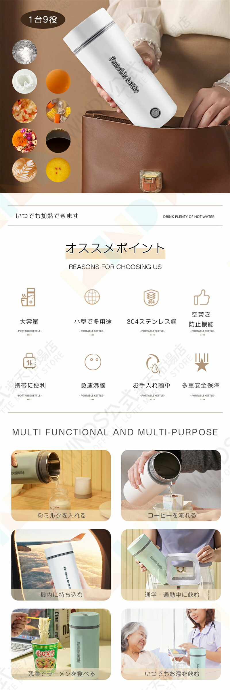 ★【最新型電気ケトル】これは水筒の携帯性とケトルの湯沸かし機能を融合し、食器の機能を短時間で最大限に発揮した電気ケトルです。お湯はいつでも温かさをもたらしてくれますが、その温かさを届けてくれるのがこの電気ケトルです。お湯だけでなく、コーヒー、牛乳、紅茶、ラーメンなどにも使えます~