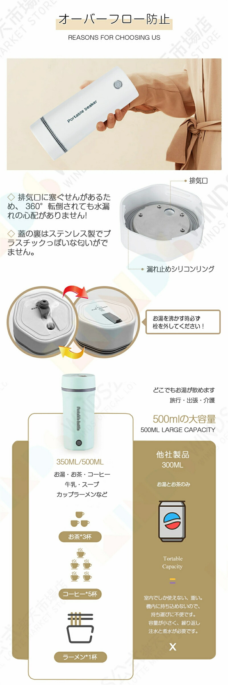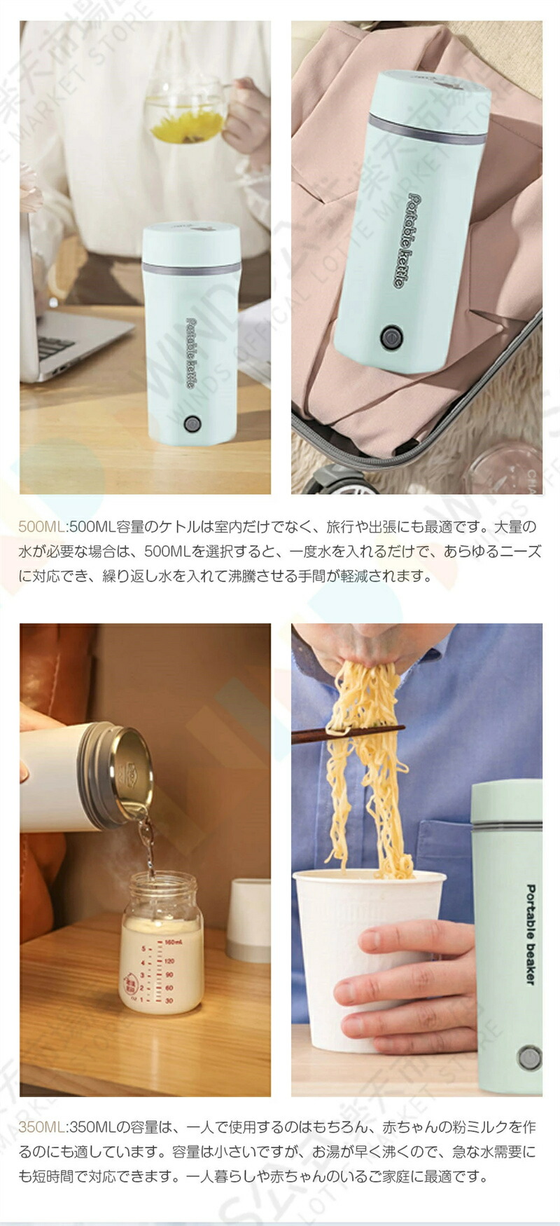 ★【350mlと500mlの大容量】お客様により良いお買い物体験をしていただくために、二つの容量を用意しています。さまざまな場面での電気ケトルに対するゲストのニーズを満たし、生活をより面白く、便利にします。日常生活のさまざまな水ニーズに対応できる350mに500mの容量で、使用状況や水の使用量に応じて適切な容量をお選びいただけます。