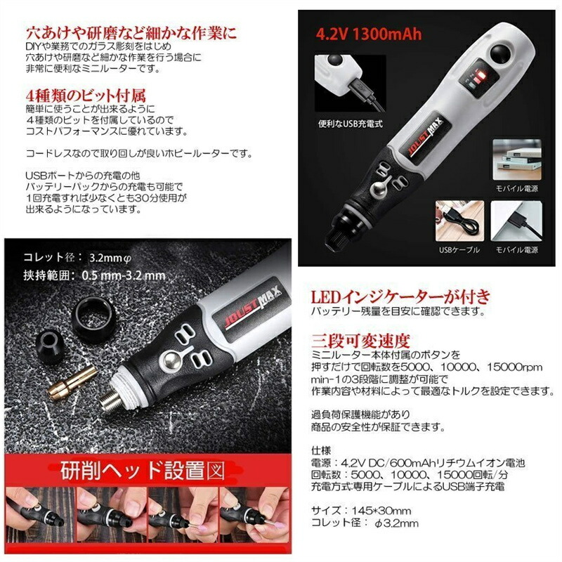 研磨機 USB充電式 ミニルーター 4