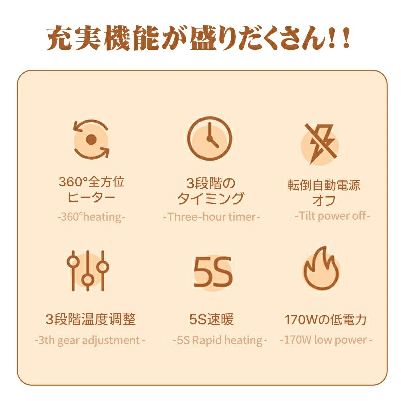 商品詳細 商品詳細 ■寒い冬でもぽかぽか!熱が逃げずに360°包み込みます! ■電源を消し忘れても、3時間経過すると自動的に電源OFF! ■パネルヒーターを倒しても、傾きを感知しすぐに電源OFF! ■3段階の温度調整ができるのでお好みで温度が選べます! ■職場でも静かで安心!無風なので乾燥も控えめです! 【商品内容】:ラウンド型パネルヒーター 【カラー】:グレー 【サイズ】:(約)120.5×49cm 【電源コード長さ】:(約)150cm 【重量】:(約)0.56kg 【電源】:100V 50/60Hz 【消費電力】:165W 【素材】:PETアルミ発熱シート/フェルト布 ※注意事項 商品写真はできる限り実物の色に近づけるよう加工しておりますが、お客様のお使いのモニター設定、お部屋の照明等により実際の商品と色味が異なる場合がございます。