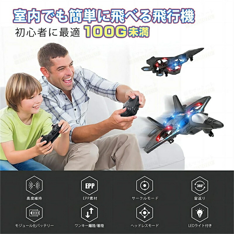 ラジコン飛行機 子ども向け 100g未満 rc 戦闘機 グライダー おもちゃ 初心者向け バッテリー3個 USB充電 軽量 耐久性 LEDライト付き クリスマス プレゼント 誕生日