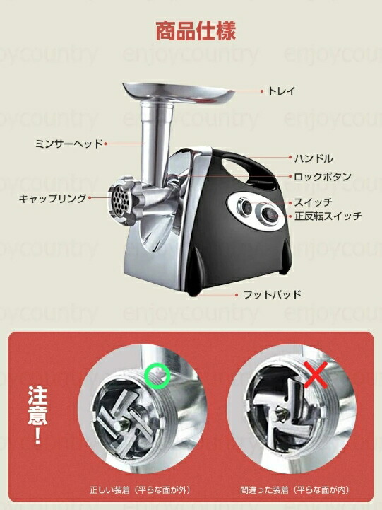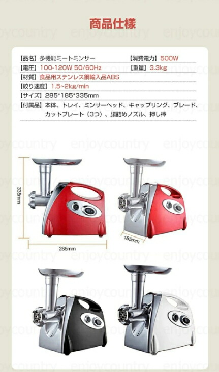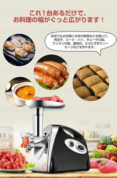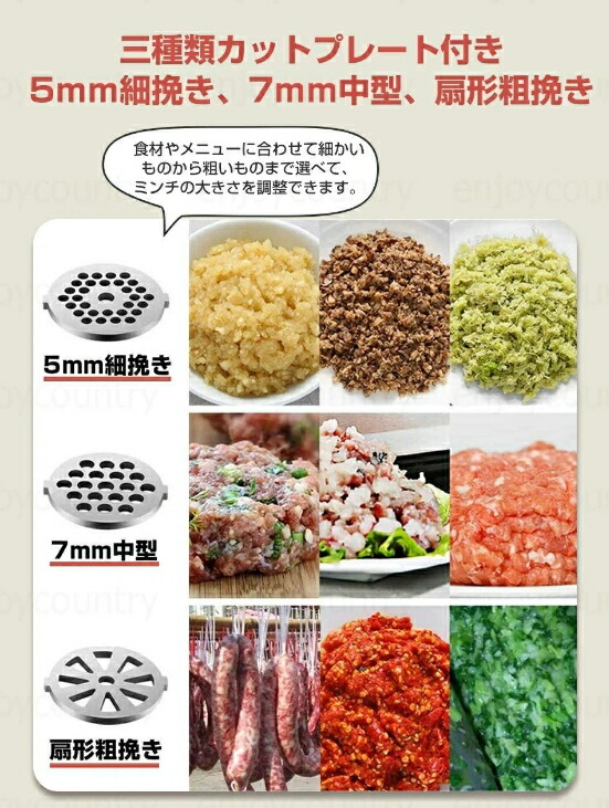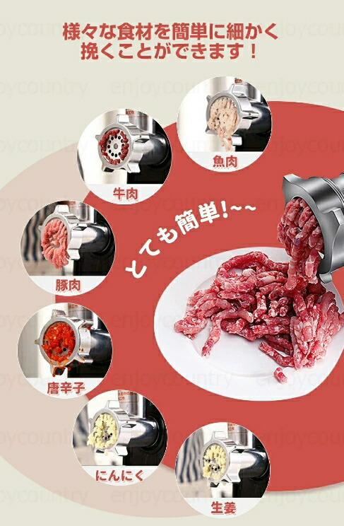 関連キーワード(本商品の説明ではありません) 電動ミンサー 肉挽き機 肉ひき機 110v ミートグラインダー電動ミンサー 肉挽き機 肉ひき機 110v 3種類カットプレートと腸詰めノズル付 ミートグラインダー 野菜みじん切り器 腸詰め機 ミートミンサー 肉や魚を簡単にミンチに 家庭用 業務用
