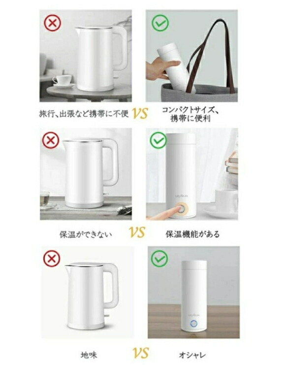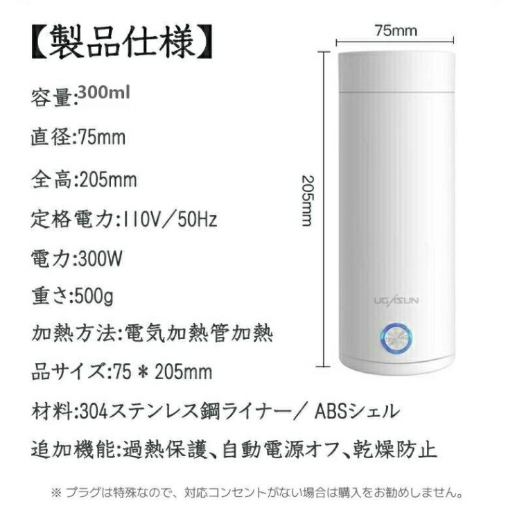 電気ケトル ポータブル 収納バッグ 電気ボトル 小型 軽量 断熱 携帯タイプ 300ml 高速沸騰ケトル ステンレス シンプル おしゃれ 持ち運びしやすい