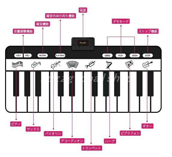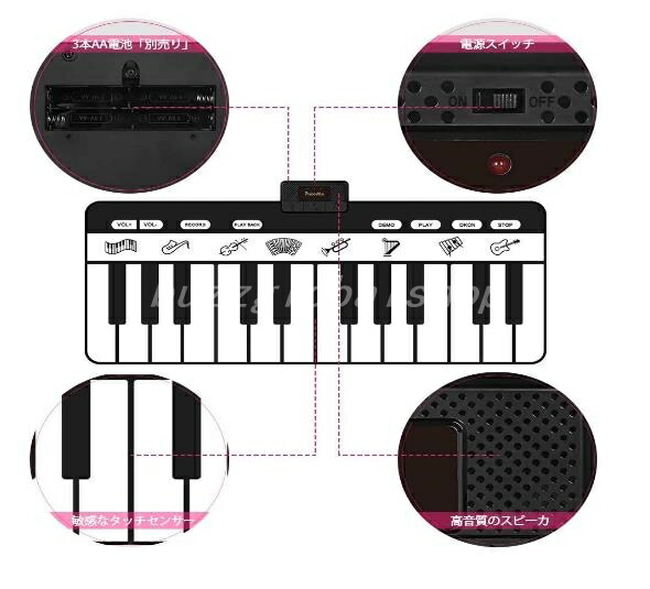 ピアノマット 24鍵盤 10デモ曲 8種類楽器音 録音機能 録音再生機能 ワンキーワンノート機能 知育玩具