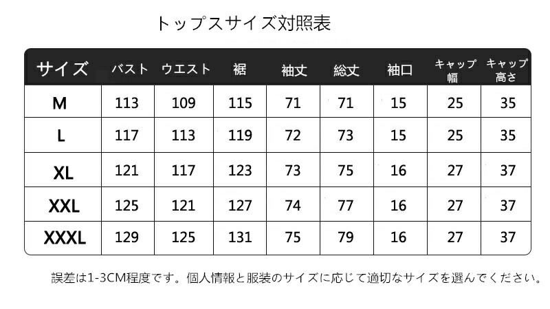 サイズ: M L XL XXL XXXL XXXXL