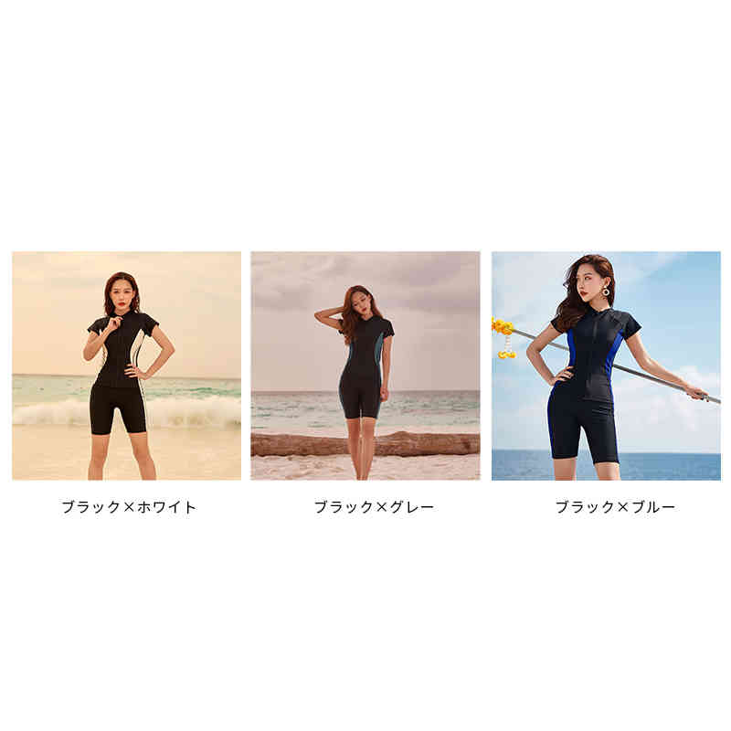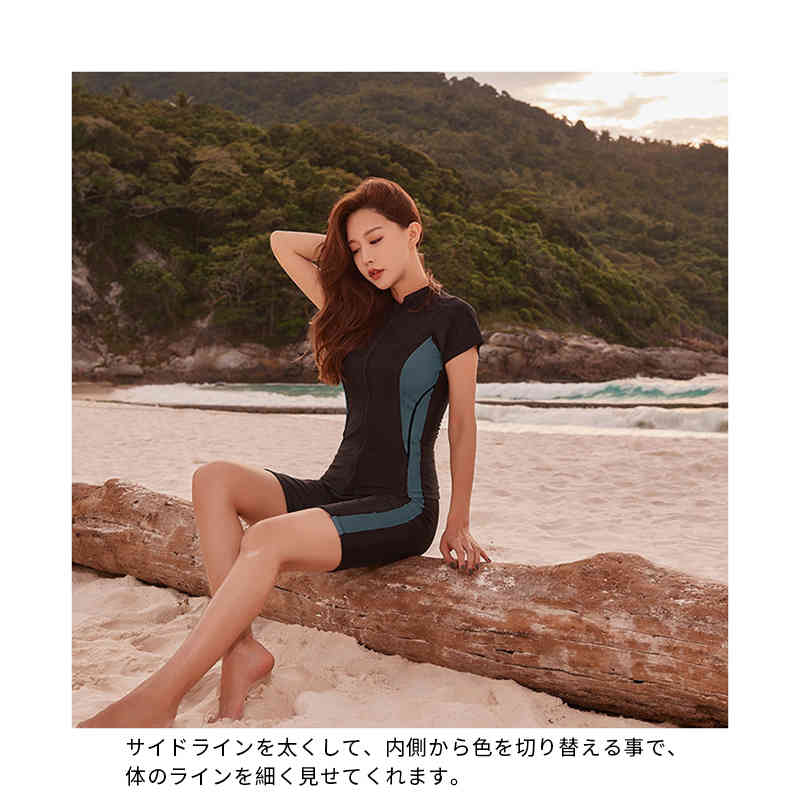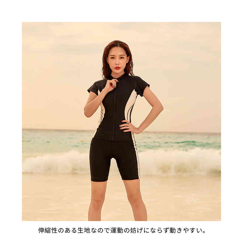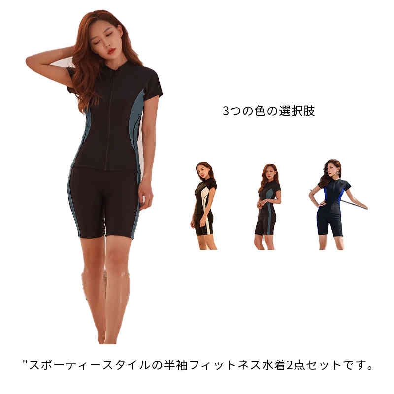 スポーティースタイルの半袖フィットネス水着2点セットです。