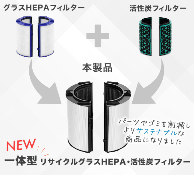 一体型リサイクルグラスHEPA 活性炭フィルターPH04 PH03 HP07 TP07 TP7A PH01 HP04 TP04 DP04 などに対応 非純正 Combiフィルター 空気清浄機フィルタ―