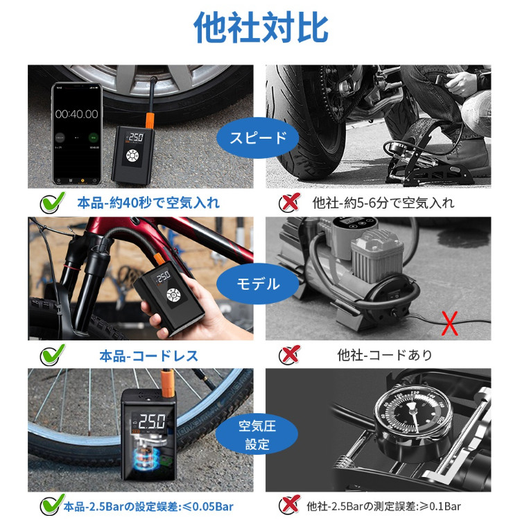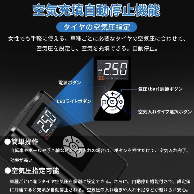 ラッピング対応 40s快速充填 空気圧測定 自動車空気入れ 電動ポンプ 簡単使える スポーツ アウトドア 自転車 サイクリング メンテナンス 空気入れ