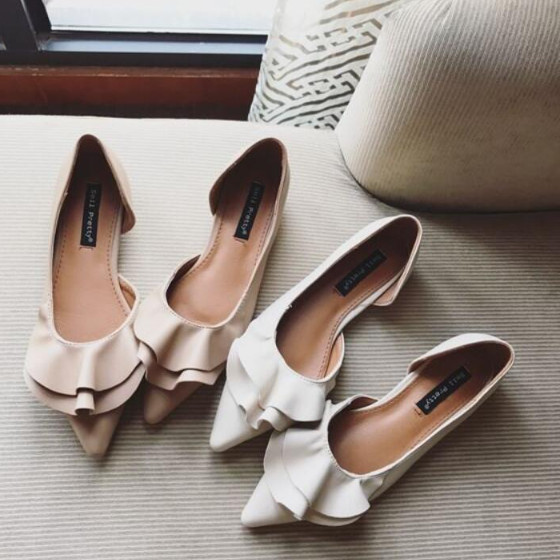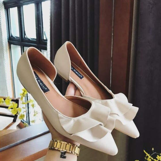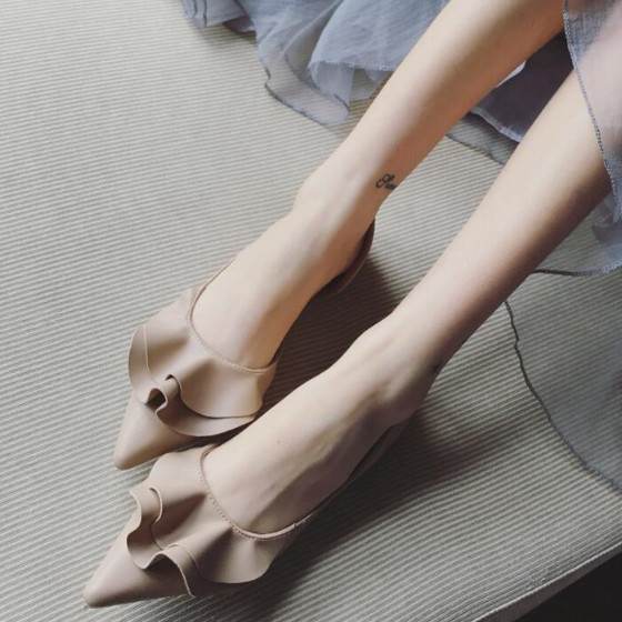 フリルパンプス フラットシューズ レデ