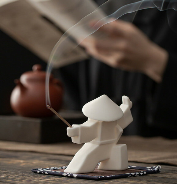 お香立て 線香立て 侍 武士 サムライ 騎士 線香トレイ 陶器 ユニーク おもしろ インテリア 置物 雑貨
