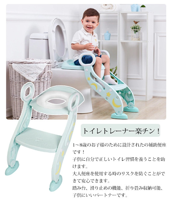 1~8歳のお子様のために設計されたすステップ式補助便座です 2重滑り止め、安定感十分、両サイドに取っ手あり子供の独立性を鼓舞します