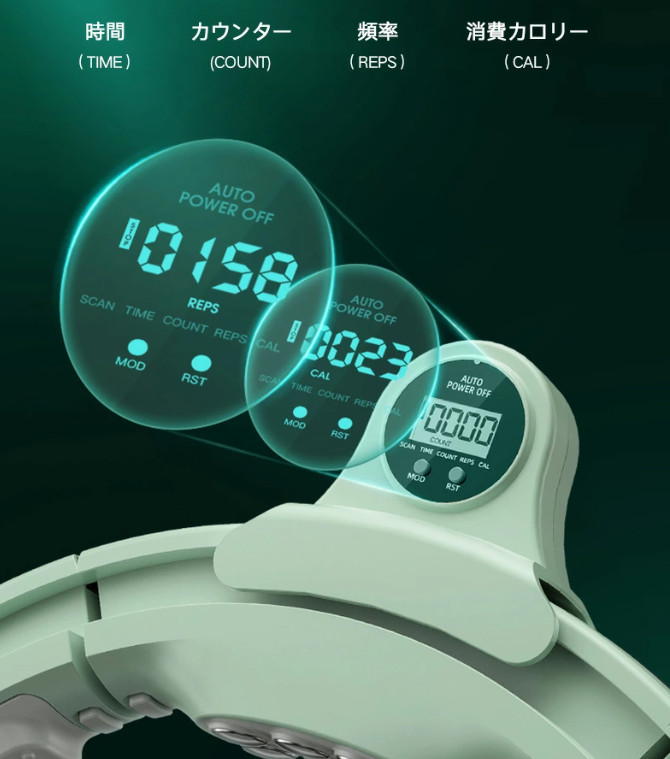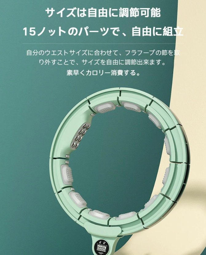 【サイズ調整&スマートカウント機能】 フィットネスフープは組み立て式で自分の体型に合わせてフラフープのサイズを自由に調節できます、1パーツの分解と組み立てはとても簡単なので、保管と輸送が大変便利し、収納にも役立ちます。スマートカウンター機能も搭載して、カウンター、カロリー計算、回転数、時間記録のデータを自由に切り替えできます。