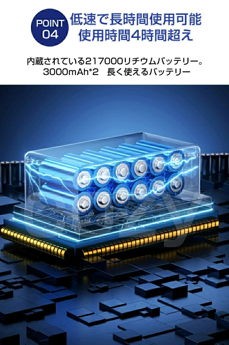 【長持ちするバッテリー寿命】車を乾燥させるジェットファンミニブロワー、217000電源バッテリー2個が内蔵されており、それぞれの容量は3000mAhで、当社のミニブロワージェットファンは長期間使用できます。