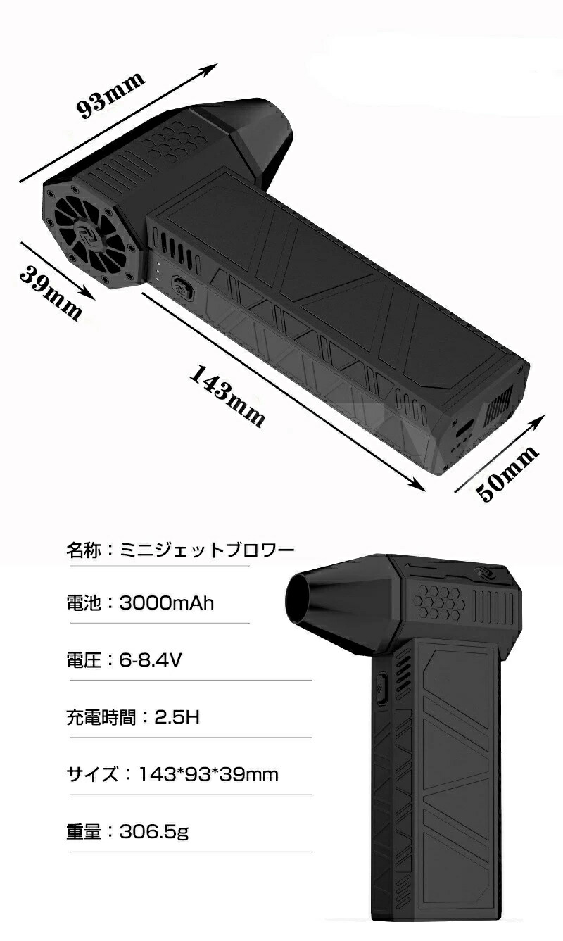 名称:最強ブロワー ミニジェットブロワー 洗車 ブロワー 強力 最強 ブロアー 除雪 ミニジェットファン ミニブロワー ミニジェットファン ハイパワー電動送風機 拭き上げ 落ち葉 エアダスター 送風 洗車後の水の吹き飛ばし 家庭用 エアダスター ペットドライヤー 小型 ブロワージェットミニ掃除機 ミニサイズブロワー ミニジェットファン 激吹きミニサイズブロワー 除塵ファン 手持ち 電動工具 52M/S 130000RPM ジェットファン 髪の毛 ペット毛 猫砂 食べこぼし パソコン 車/キーボード掃除 屋外クリーナー