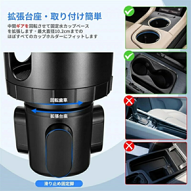 商品特徴 ・「2in1デザイン」 このスマホホルダーは、車載用のカップホルダーと