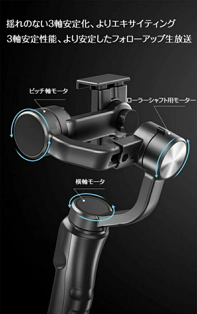 3軸携帯電話スタビライザー 手持ち 自撮り棒 スマートフォトスタビライザー ジンバル スマホ用ジンバル 水平撮影と垂直撮影を自由に切り替える 動画撮影 携帯電話スタビライザー 三脚多機能