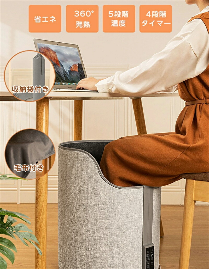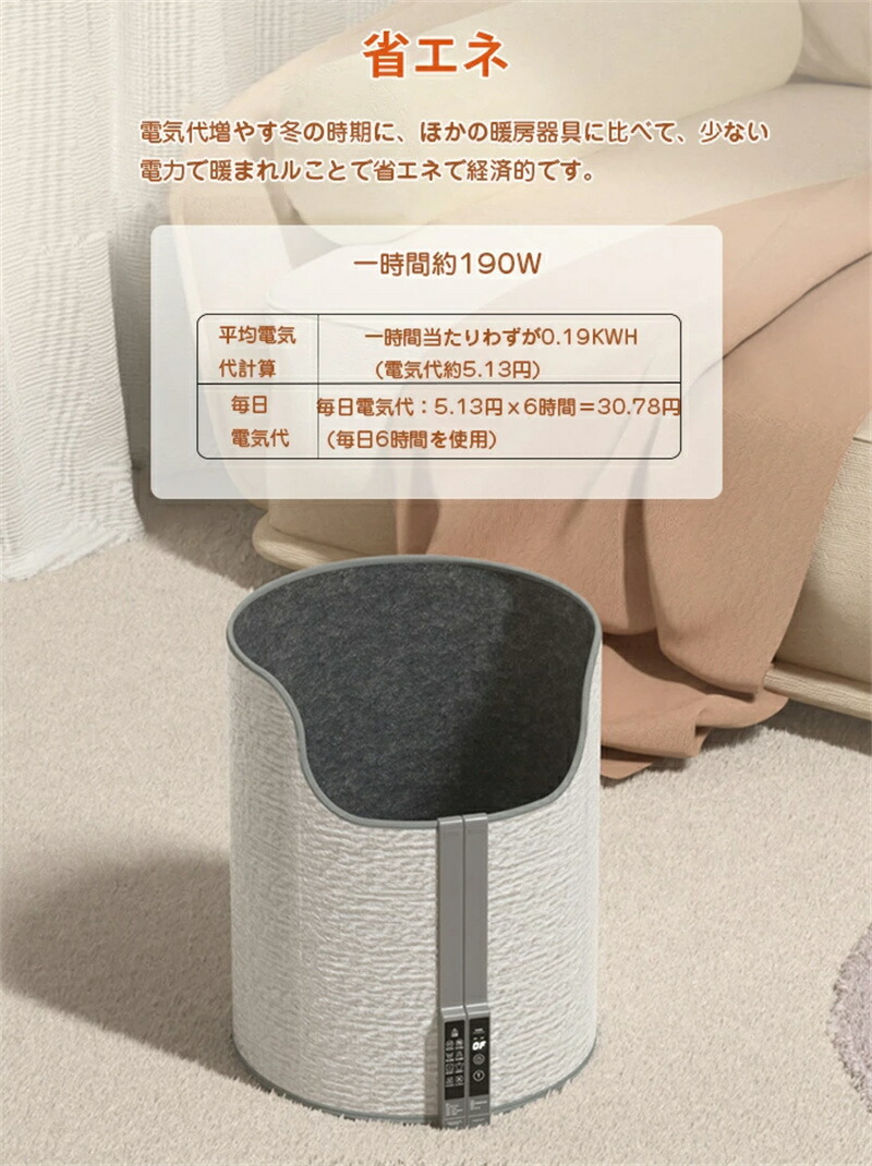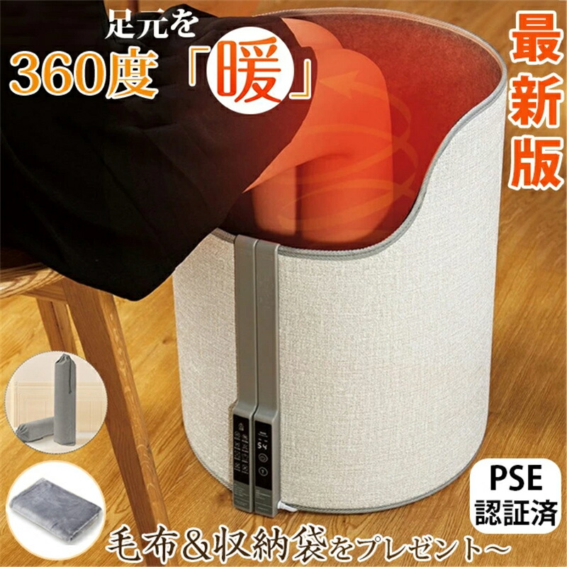 囲まれることで熱が逃げすぽかぽか 足元ヒーター ラウンド型 毛布付き 電気足温器 温度調節 タイマー 省エネ 折りたたみ式 プレゼント