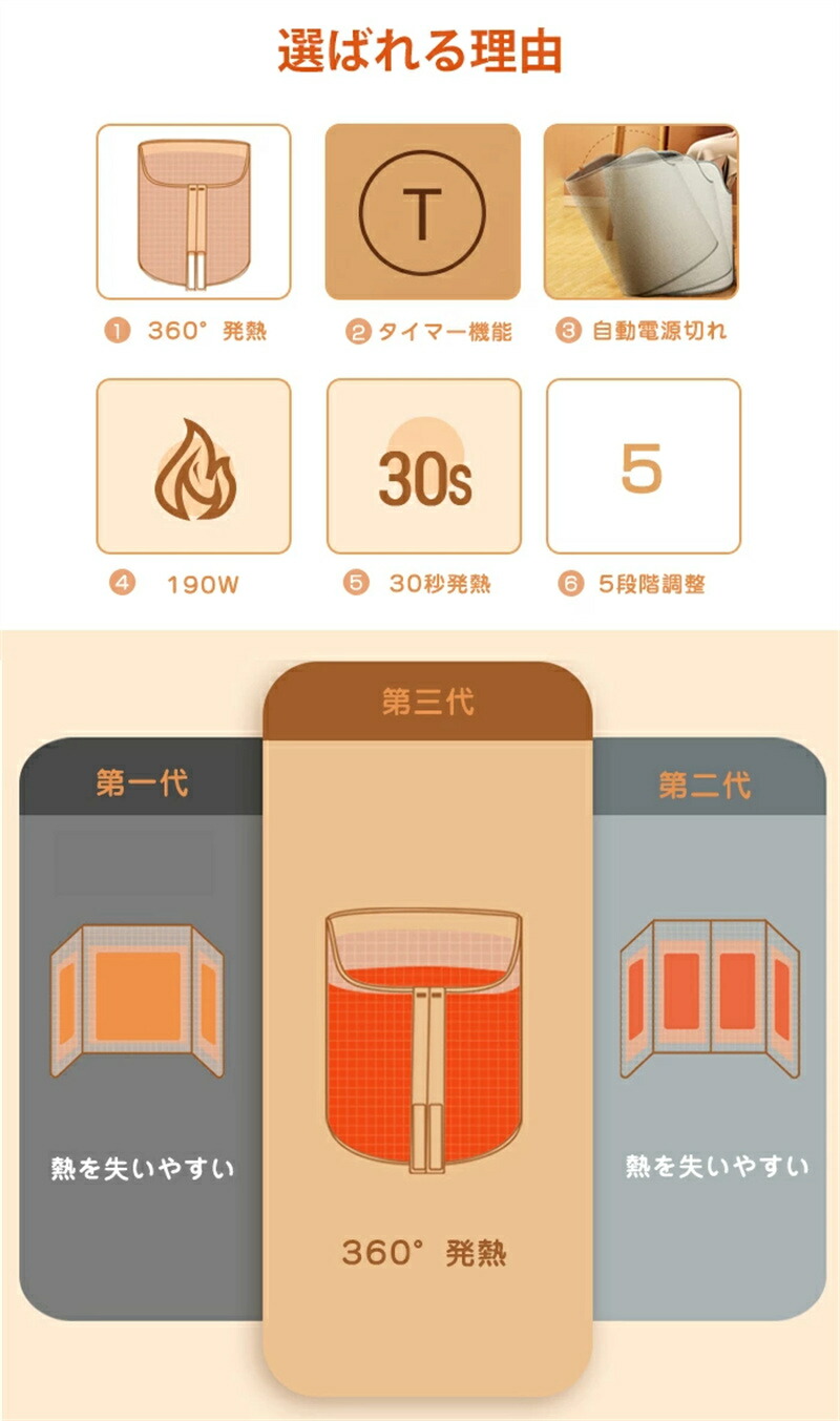 【最新版360°発熱、発熱効率60%↑】