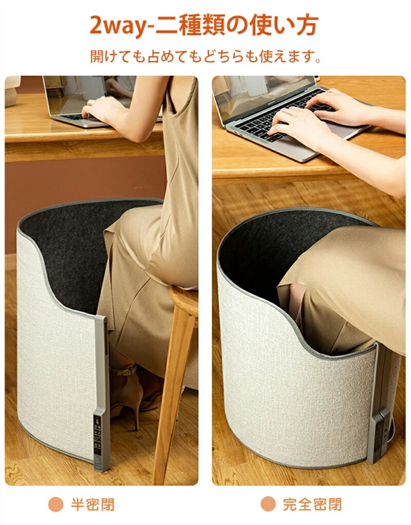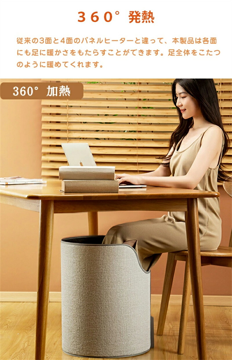 従来の3面と4面のパネルヒーターと違って、本製品は各面にも足に暖かさをもたらすことができま す。足全体をこたつのように暖めてくれます。