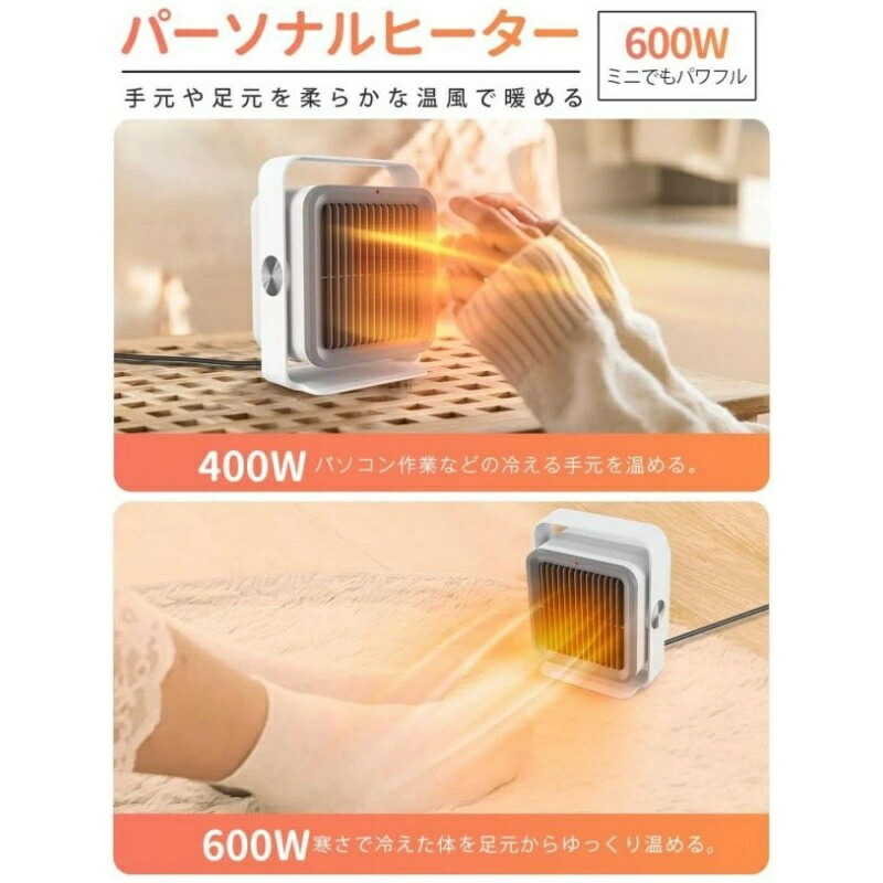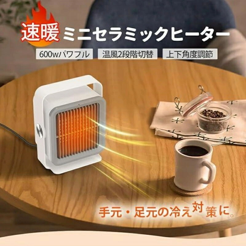 ヒーター セラミックファンヒーター 小型 省エネ 速暖 足元 手元 400W 600W 卓上 ファンヒーター 電気 静音 角度調節 転倒オフ 過熱保護 セラミックヒーター ミニ 電気ヒーター トイレ