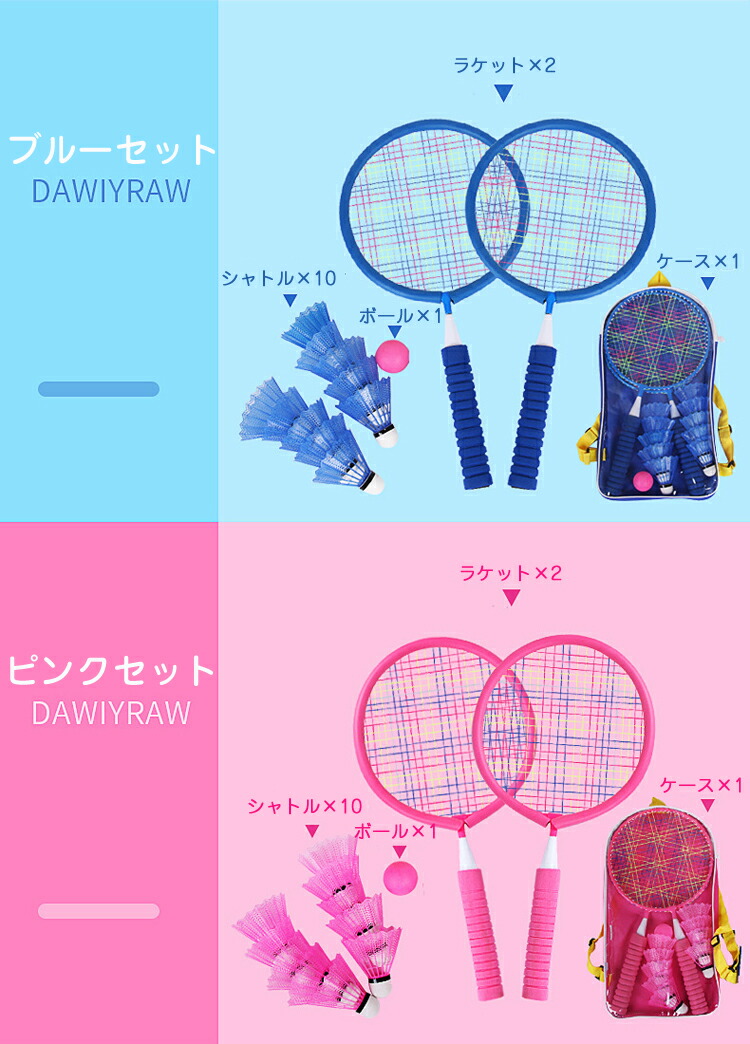 贅沢なバドミントンセット 子供用 外遊びグッズ 2本入り シャトル10個付き 収納ケース付き キッズ用バドミントンラケット おもちゃ