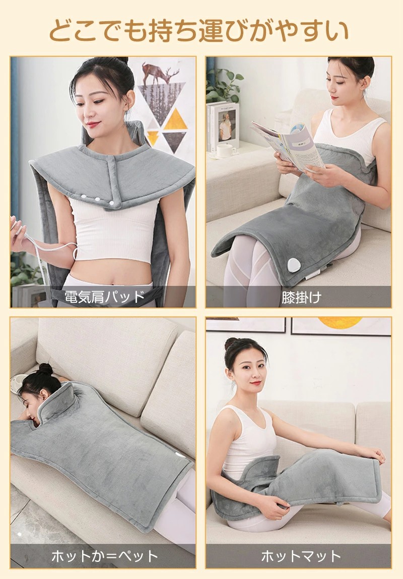 様々なシーンに適用:電気肩パッドは勉強時や在宅勤務時に肩掛けにしたり、ソファーでテレビを見ながら膝掛けにしたり、使い方次第で色々なシーンで活躍します。ご家族様と一緒に寒い冬をより温かく快適にお過ごしいただけます。体の寒さにぴったりの寒さ対策の商品です。