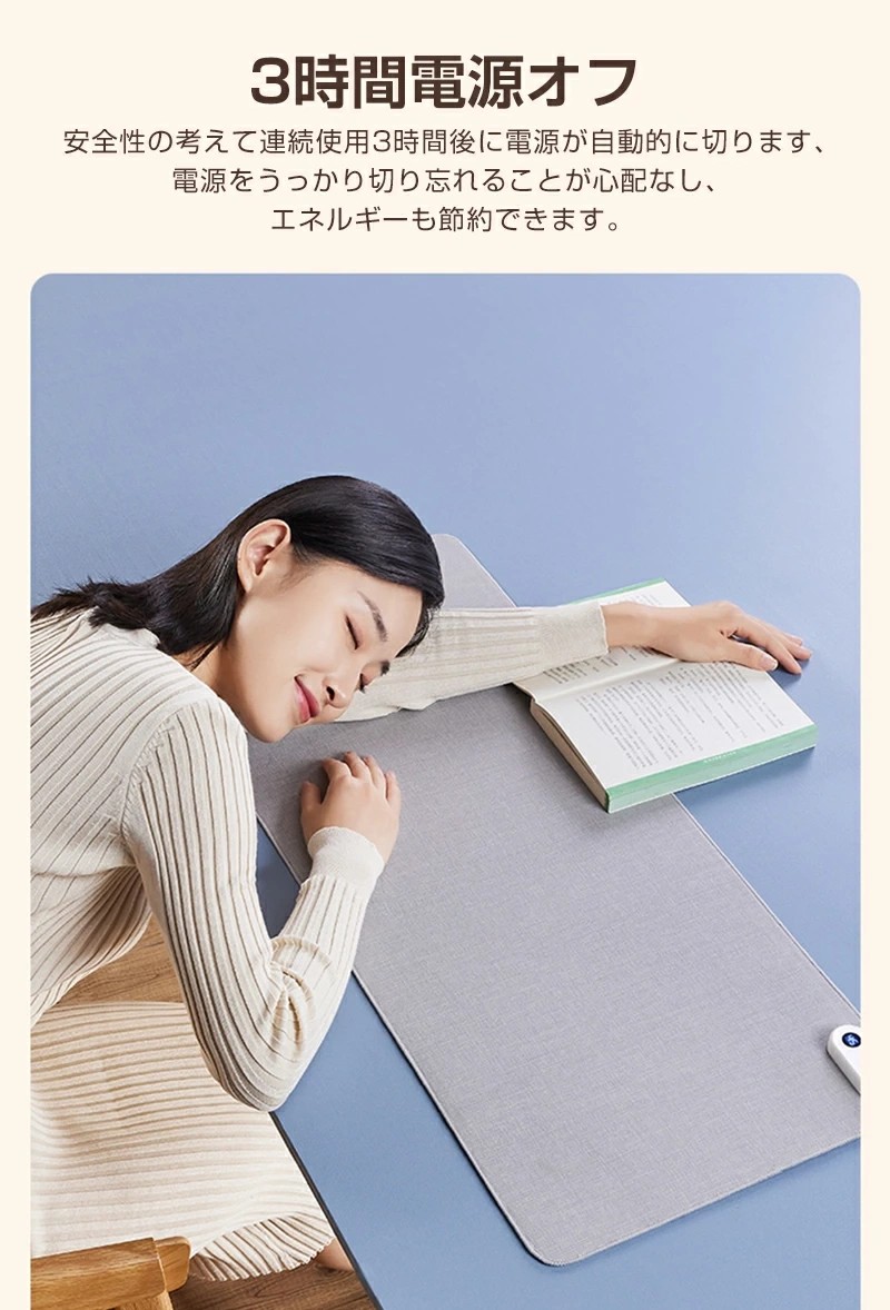 シンプルな操作でいつでも温めます。温熱デスクマットは、冬の日、デスクに敷いて手元が温かく、宿題をする、在宅ワーク、PC作業でも暖かい環境を作って効率UP。デスクマットの機能はもちろん、電気ホットマットとして防寒対策に役立ちます。
