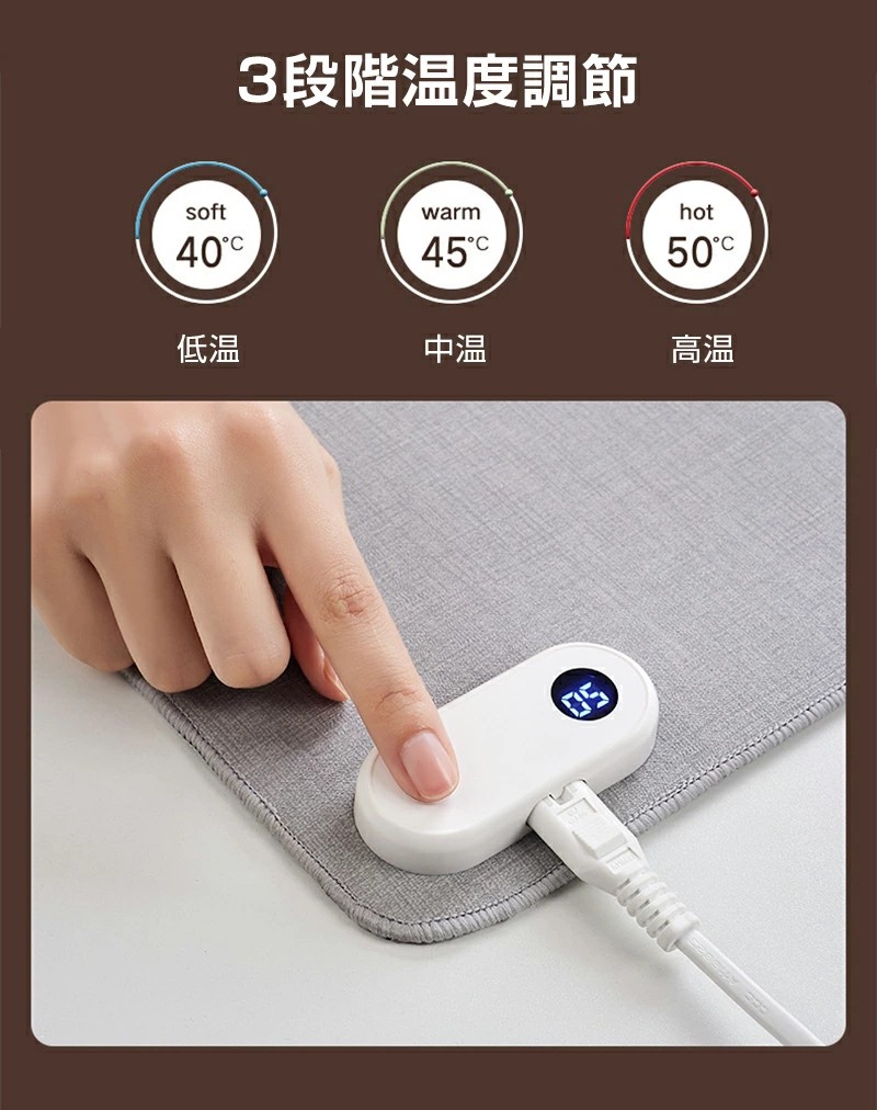 温度は3段階を調節するできて、個人の好みや周囲の環境に応じて自由に選択できます。