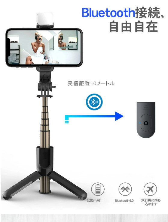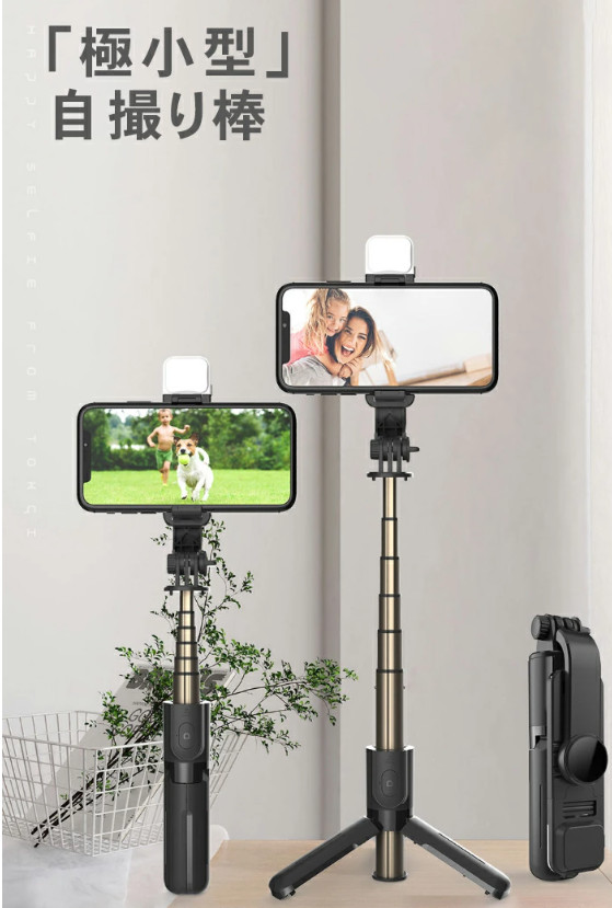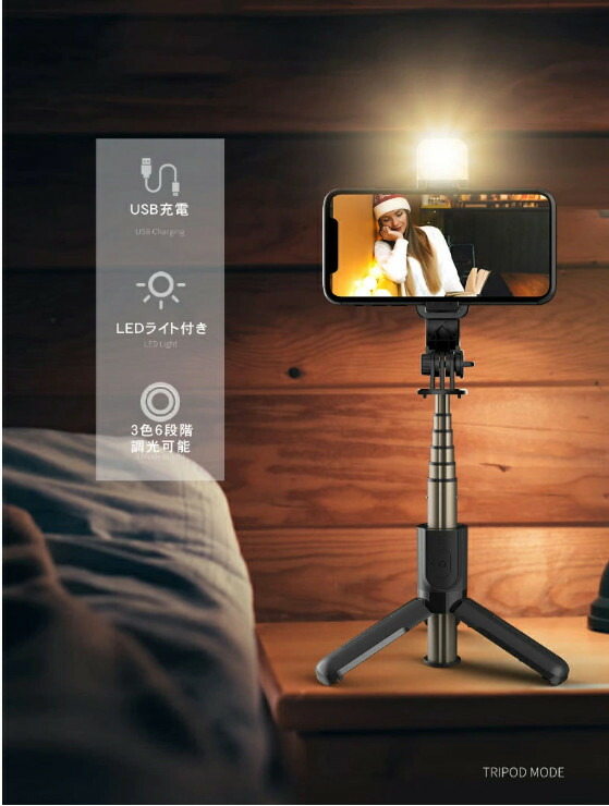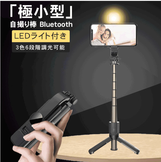 自撮り棒 LEDライト付き セルカ棒 三脚 レンズ リモコン付 Bluetooth スマホ三脚 ミニ三脚 シャッター付 スマホ 自分撮り 自撮り 三脚スタンド 三脚付きセルカ棒 無線