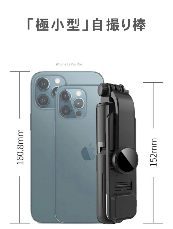 【超コンパクト&軽量で頑丈】コンパクトなサイズ、軽量化や頑丈化のABSとPC素材と高アルミ合金素材、すごく使いやすいスマホ自撮り棒です。 ポケット、鞄の中でも邪魔になりません。最短サイズはわずか15.2cm、重さは約141gしかありません。パッケージ内容:自撮り棒本体(リモコン付き)×1、充電ケーブル×1、説明書×1。