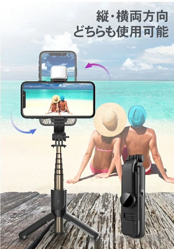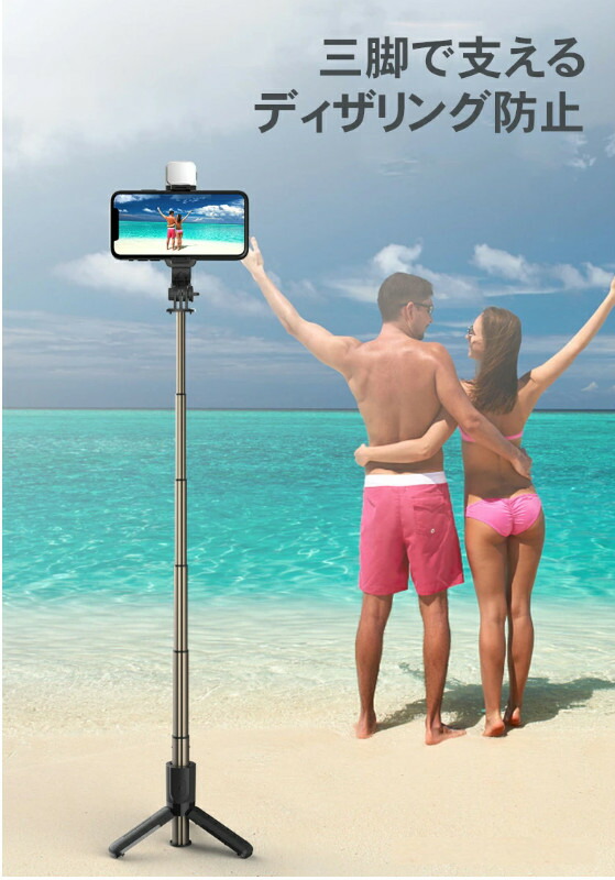 【三脚&一脚兼用】三脚と一脚を自由変換、自撮りも大人数の集合写真も撮りやすいです。それ以外、生放送やビデオ通話の時両手を解放でき気楽にお話できます。三脚の先に滑り止めゴムのおかげで、ロッドを伸ばした時にグラつきなく、しっかり地面に固定されるので安定感が抜群です。使わないとき一脚に収まり、収納しやすいです。