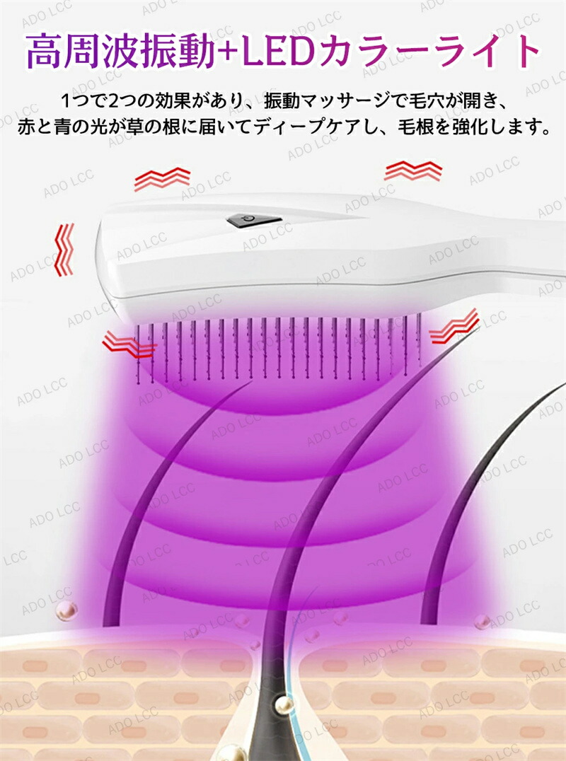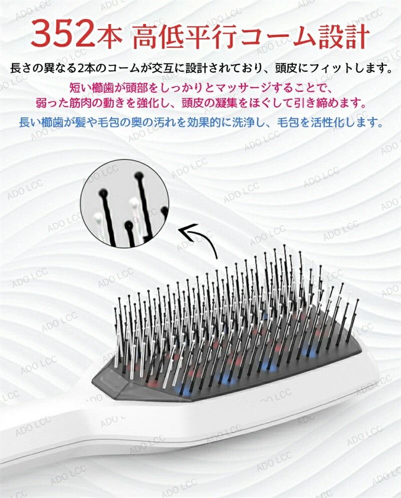 電動頭皮ブラシ ヘアブラシ LED光エ