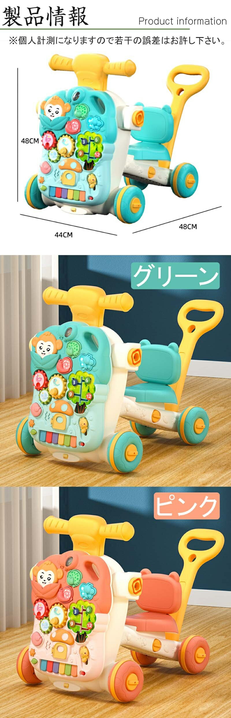 手押し車 知育 遊び 付き おもちゃ 知育玩具 ベビーウォーカーおもちゃ 乗用玩具 三輪車 三輪車