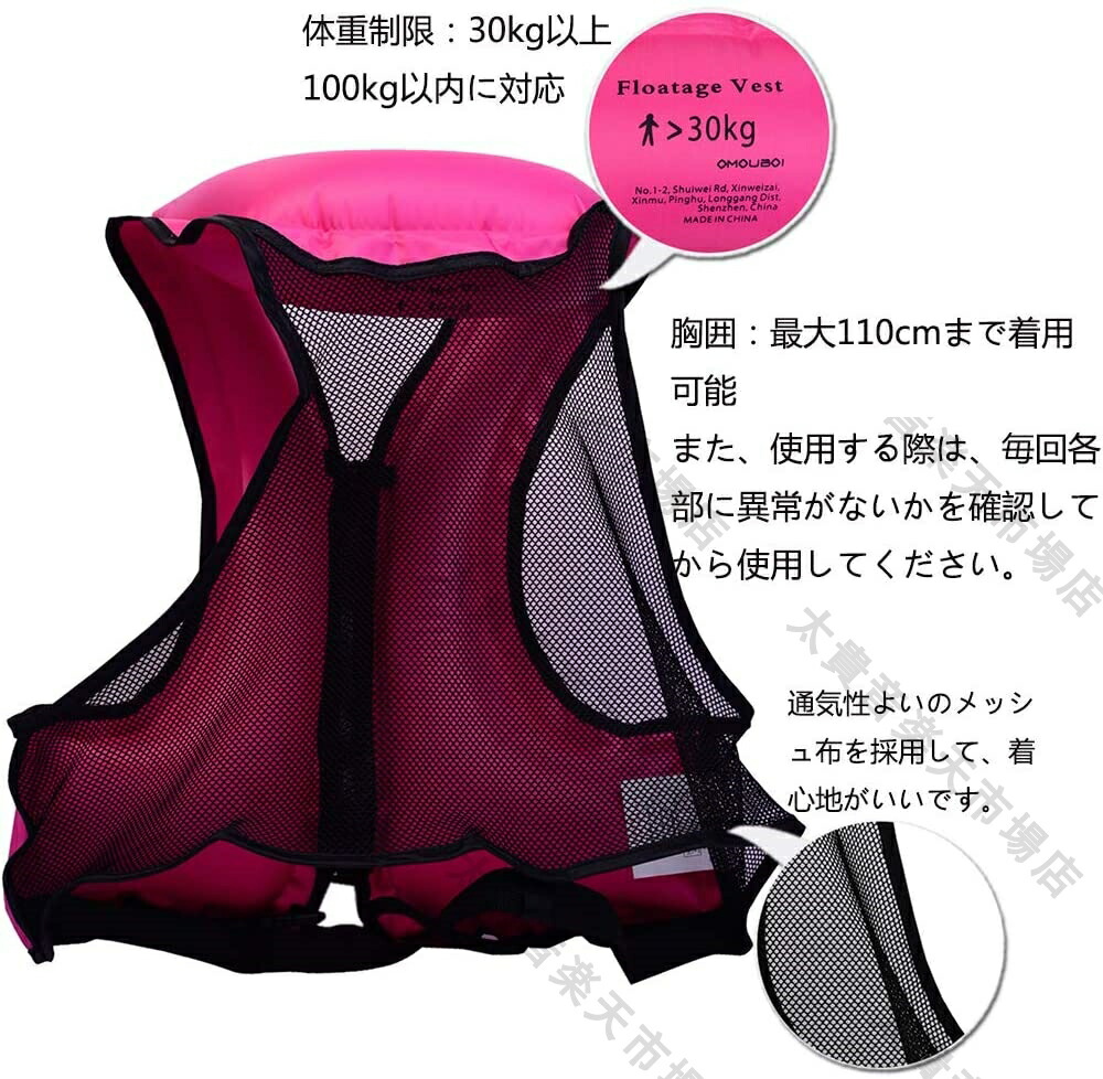ライフジャケット 救命胴衣 6色 子供用 大人用 男女兼用 手動膨張式 川海 水上運動 シュノーケリング 水泳など フローティングベスト 釣り 渓流 川海遊びなどに適用 超浮力