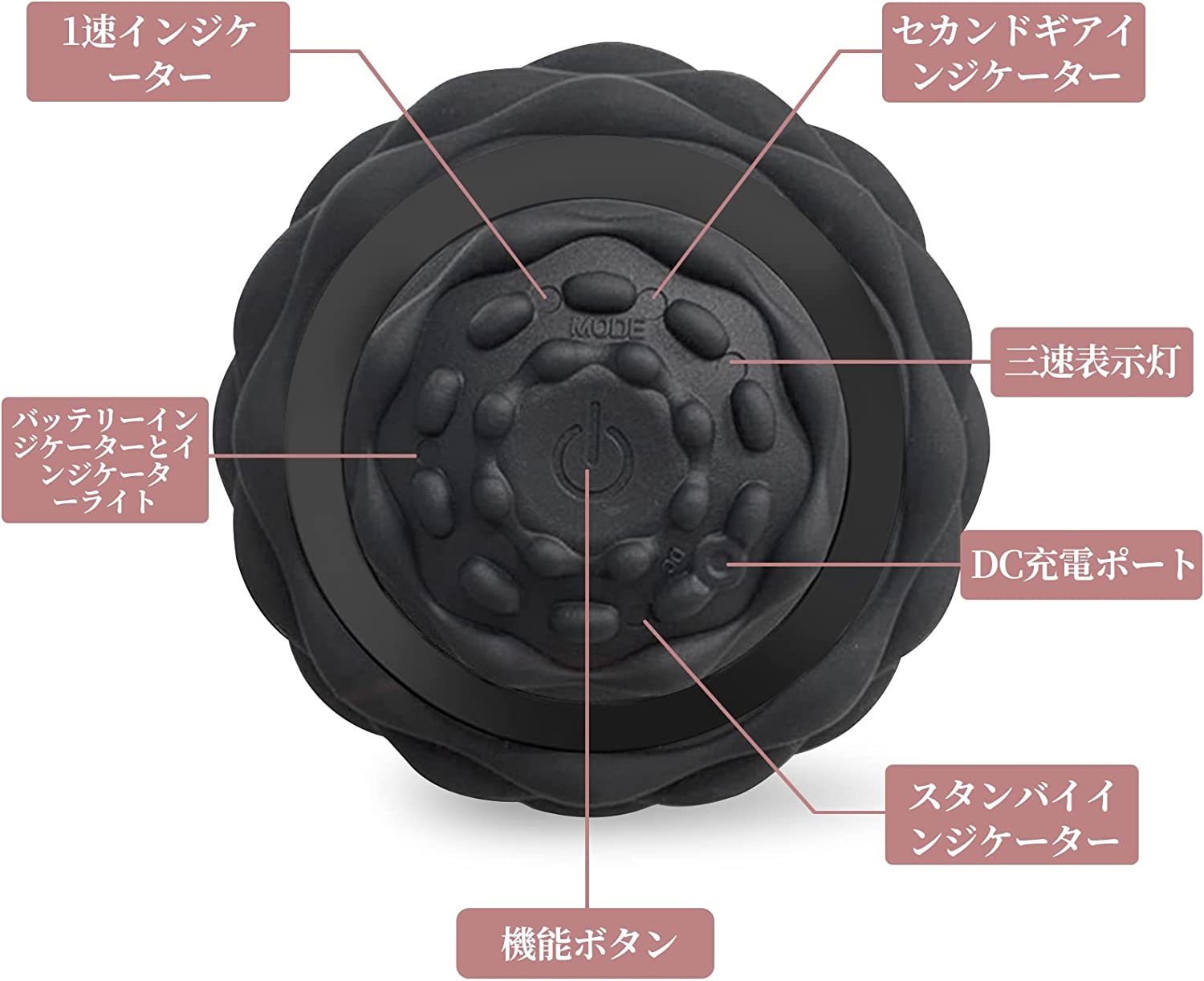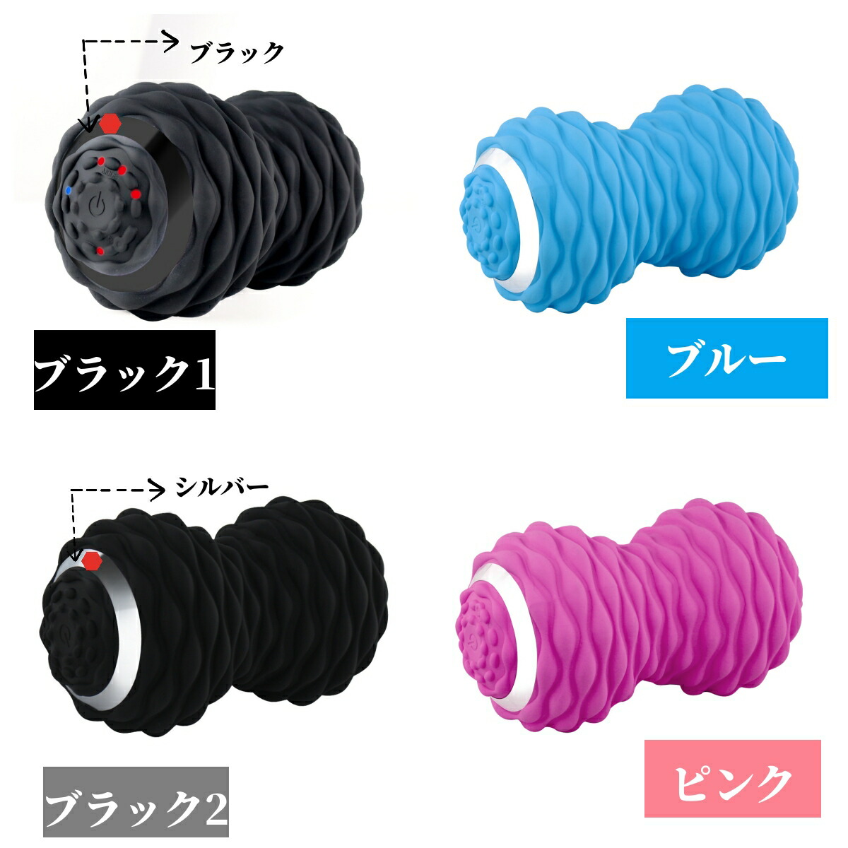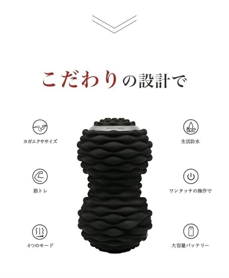 【ボディを包むシリコンラバー】柔軟で耐久性に優れたシリコンラバーでボディを包んでいるので触り心地がよく、ボディ接地面と中央部分にラインを入れたことで身体に当てたまま転がしやすく、特殊形状により深部へアプローチします。(4色からお選びいただけます)。