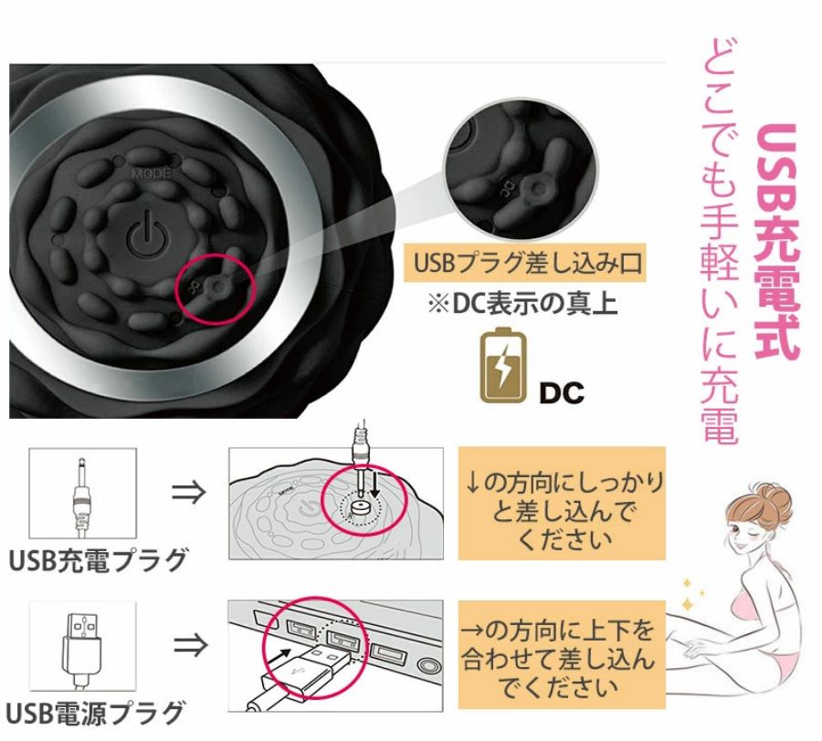 【IP65防水規格】本体はIP65防水仕様でエクササイズ後の汗などを気にせず使える防水のバイブレーションボール。また、防水仕様の為、差込口は閉じた状態で、差込口は「DC」の刻印の真上にありますので、最初の充電の際はゆっくり差し込んで下さい。