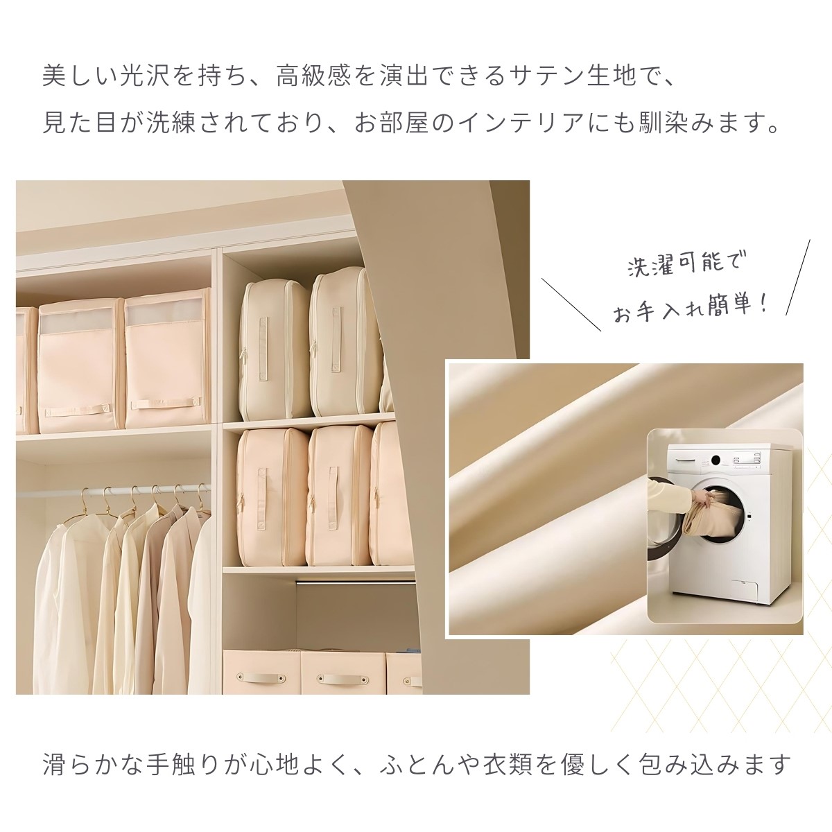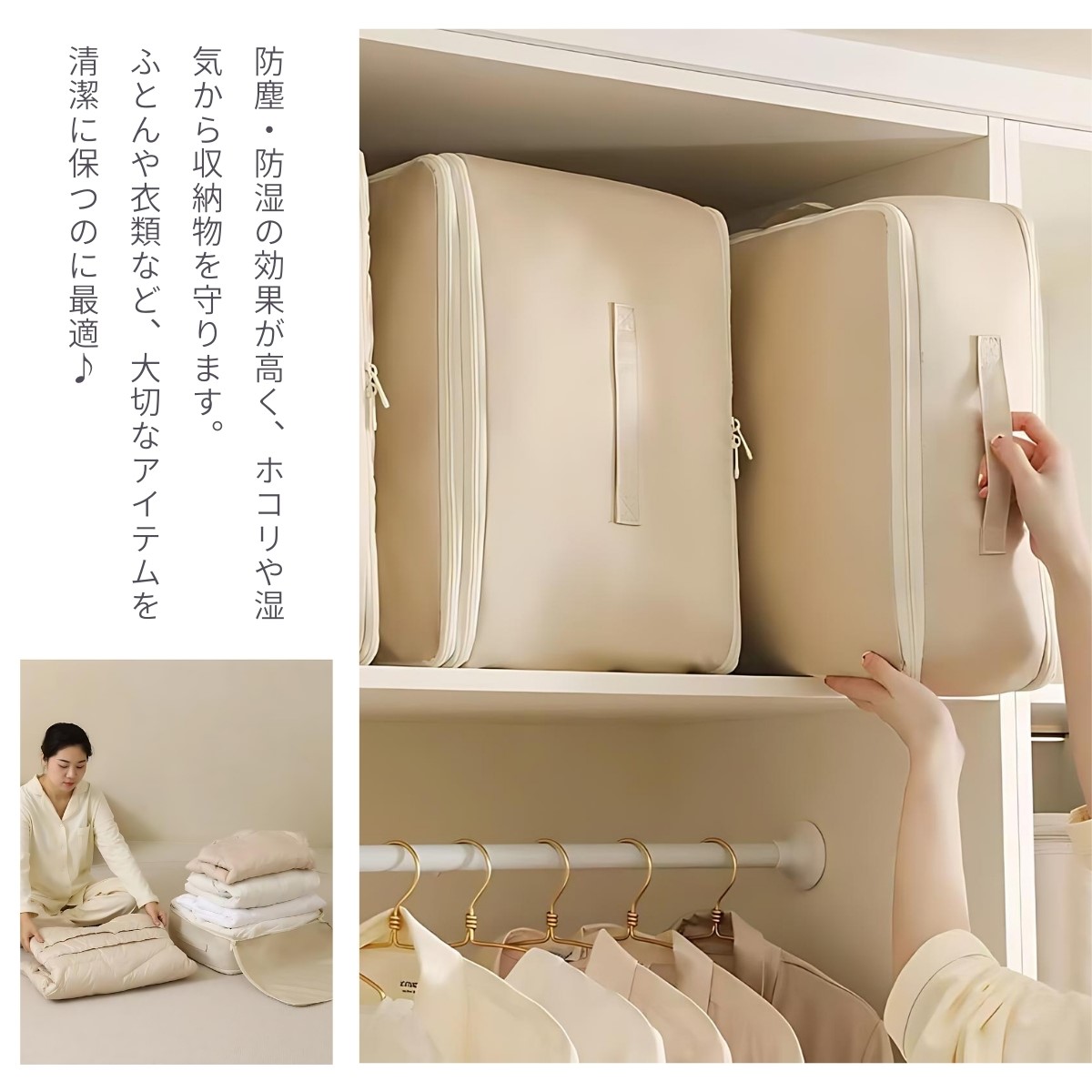 ・湿気やホコリから衣類を守り、水洗いも可能。