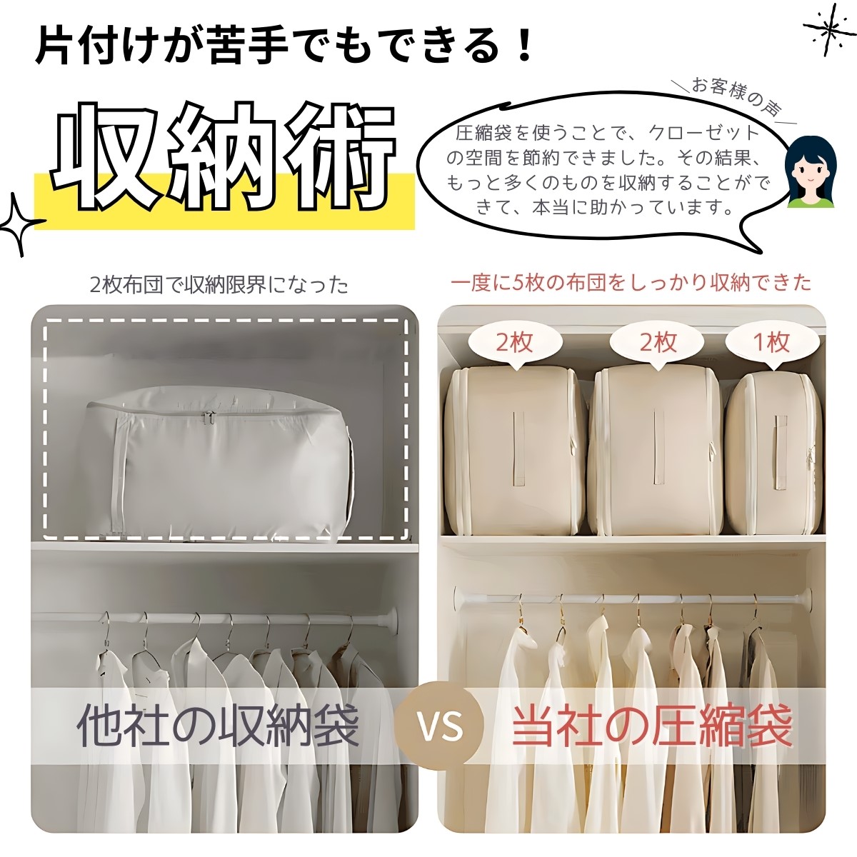 【手軽に圧縮!掃除機不要】