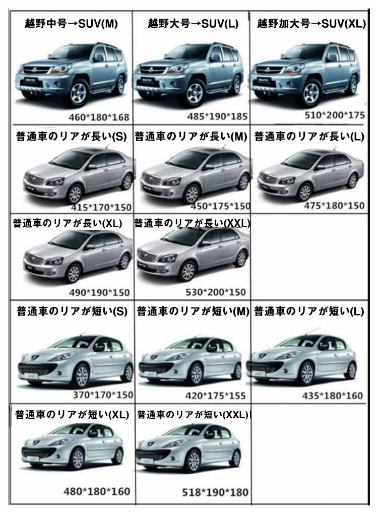 【SUV(M)】 【SUV(L)】 【SUV(XL)】 【普通車のリアが短い(S)】 【普通車のリアが短い(M)】 【普通車のリアが短い(L)】 【普通車のリアが短い(XL)】 【普通車のリアが短い(XXL)】 【普通車のリアが長い(S)】 【普通車のリアが長い(M)】 【普通車のリアが長い(L)】 【普通車のリアが長い(XL)】 【普通車のリアが長い(XXL)】