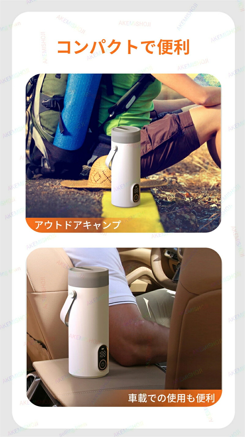 電気ケトル ボルト 車載ケトル ポータブル 電気ポット 小型 一人用 携帯便利 オフィス用 ポータブル電気ボトル 保温カップ おしゃれ 誕生日 記念日プレゼント