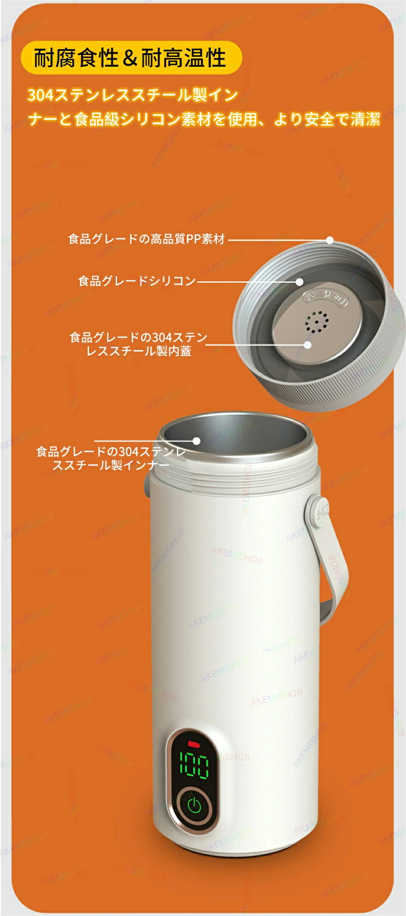 フードグレードのSUS304ステンレス鋼とベビーグレードのPCでできており、耐久性がありお手入れも簡単です。カバーは、液体のオーバーフローを防ぎ、保温効率を向上させるように設計されています。断電すると、6-8時間保温可能です。