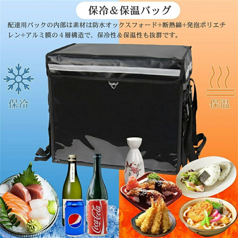 【たっぷり入る30L~80L大容量】大容量、一度にたくさん料理を収納可能です。できるだけ食材の温度をキープする、ピザ・ファーストフード・刺身・寿司・皿盛り料理用配達用デリバリーバッグです。ドリンクやお弁当などの一品物を収納できます。家族や友人とピクニックするときも大活躍なバッグです。