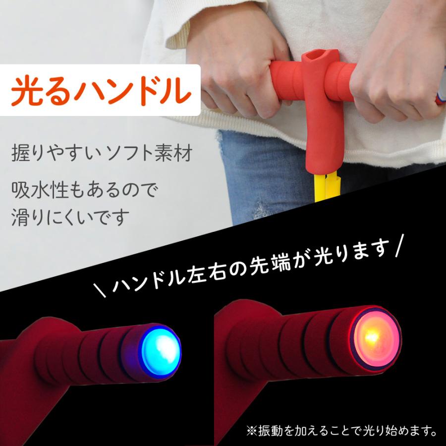 握りやすいハンドルは、衝撃を感じると左右の先端が光って楽しい♪