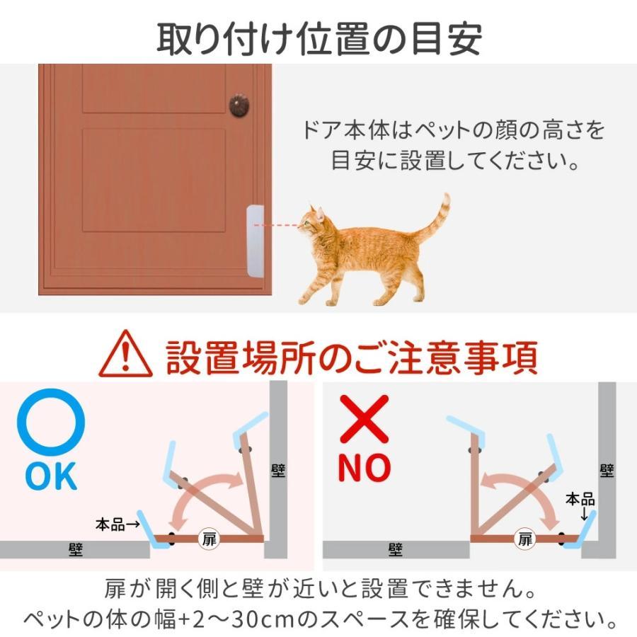 (2)ドアが開く側と壁が近いと設置不可 目安としてペットの体の幅+2-30cmのスペースの確保が必要