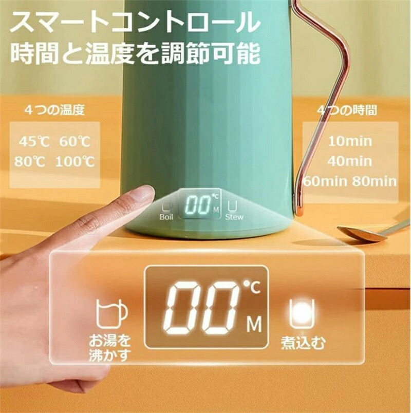【時間と温度を調節可能】この電気ポットは、煮込みの温度と時間を調節することができます。4つの温度と4つの時間を選べます。適当な温度と時間を設定して、飲み物の味がよく出ます。