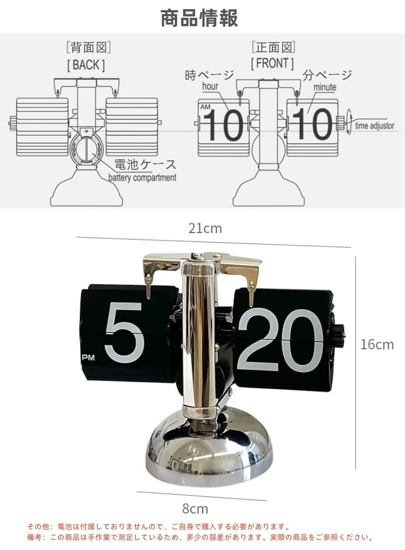 フリップクロック 電池式 パタパタ時計 フリップスタンドクロック 置き時計 レトロ おしゃれ 24時間制 回転式時計 卓上時計 入学 祝い デジタル時計 機械時計 リビング 棚時計 装飾用