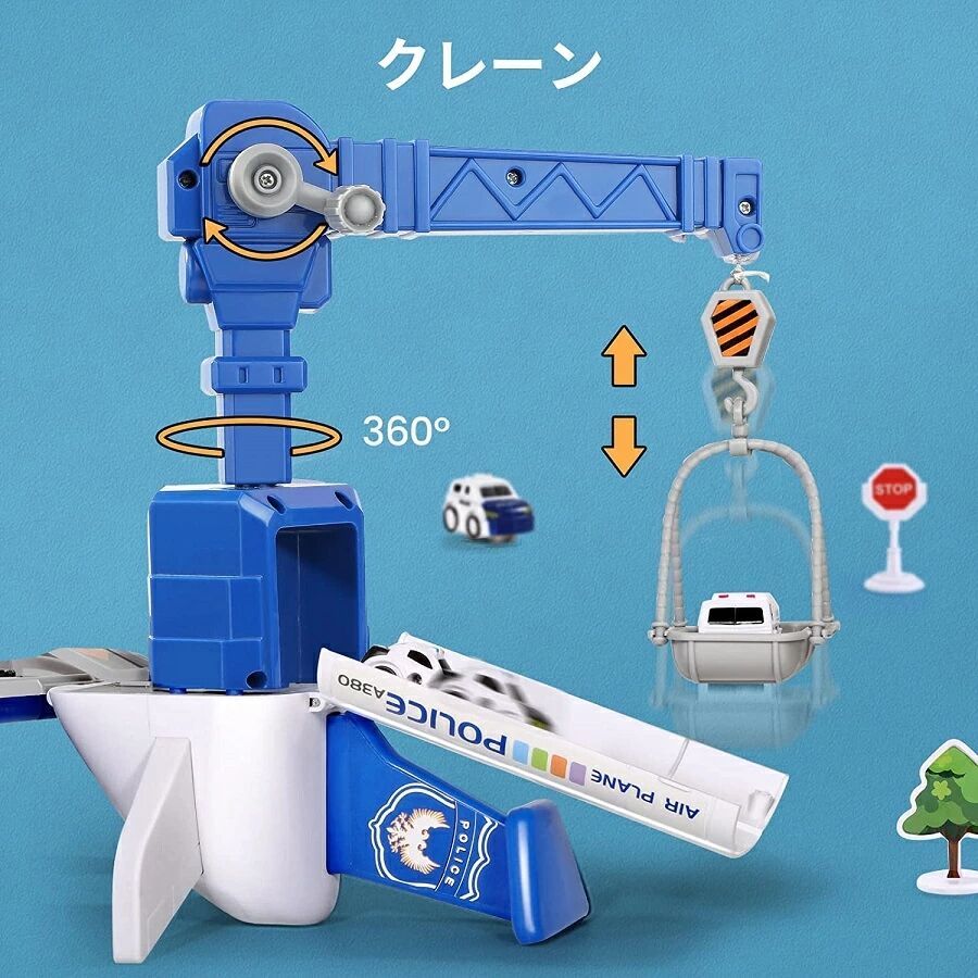 【豊富な車と飛行機のプレイセット】車と飛行機が組み合わされていて、キャビンが開閉可能、内部には大きな収納スペースが付いていて、DIY可の飛行機おもちゃセットです。トラック、クレーン、ミニ遊具、道路標識がセットされた飛行機で、子供たちと友達は素晴らしい時間を過ごすことができます。