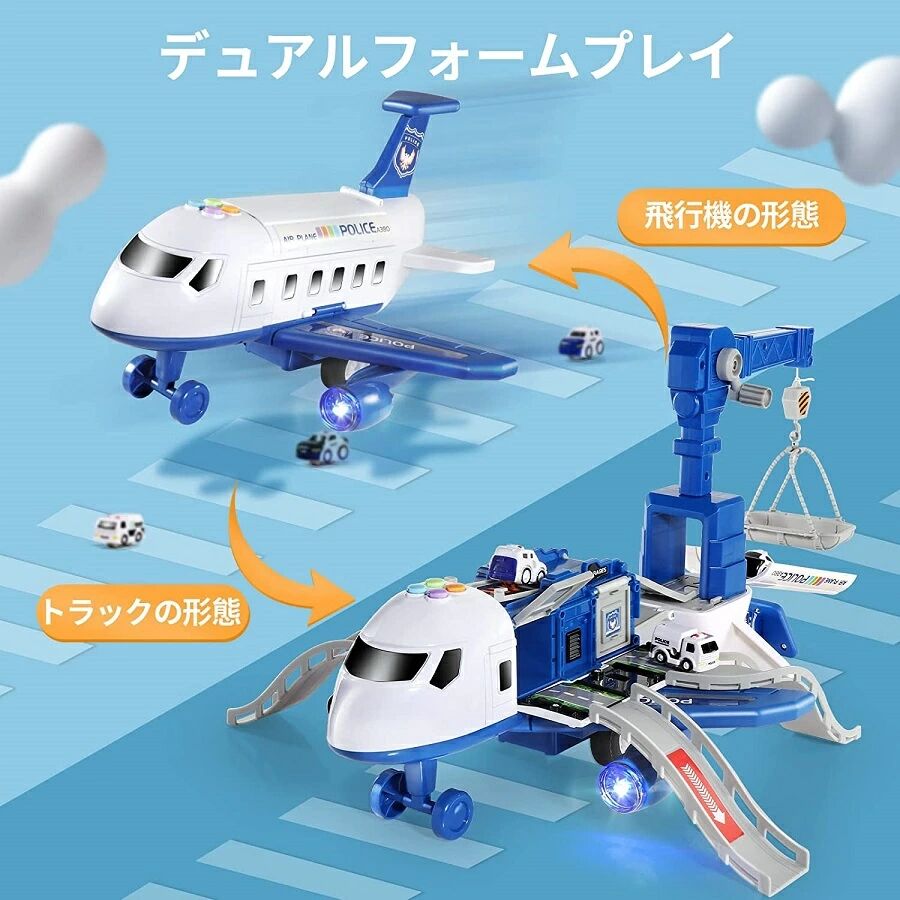 飛行機 おもちゃ おままごと 2in1 分解可能 航空機おもちゃ ミニカー 3台 ライト 音楽機能付き 子供向け 知育玩具 お誕生日 プレゼント